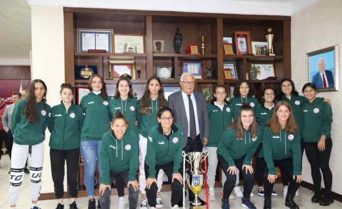 Ankara BŞB. Fomgetspor Kadın Futbol Takımı ile Ankara’da oynadığı 29 Ekim Cumhuriyet Kupası maçını penaltı atışları sonucu kazanan Kdz. Ereğli Belediyespor Kadın Futbol Takımı oyuncuları ile teknik heyet, Kdz. Ereğli Belediye ve Belediyespor Kulüp Başkanı Halil Posbıyık’ı makamında ziyaret ederek mutluluklarını paylaştı. Futbolcular, kazandıkları kupayı, Posbıyık’a teslim etti.