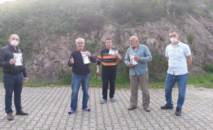 Zonguldak’ın Ereğli ilçesine bağlı Topçalı Mahallesi Muhtarı Hasan Aksoy sağlık çalışanlarına yaklaşık 1000 adet siperlik maske vermesinin ardından kendi mahallesinde ki vatandaşlara kapı kapı dolaşıp maske dağıttı.