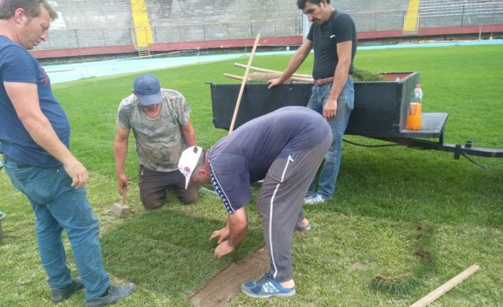 TFF 2.Lig takımı Zonguldak Kömürspor iç sahada maçlarına ev sahipliği yapan Karaelmas Kemal Köksal Stadyumunda çimlendirme çalışması devam ediyor.