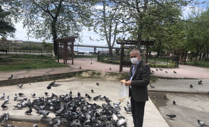 Zonguldak Alaplı ilçesinde sokağa çıkma kısıtlamasının ardından İlçede görev yapan Gazeteciler , köpekler ve kediler için mama bırakarak, güvercinlere yem verdi.