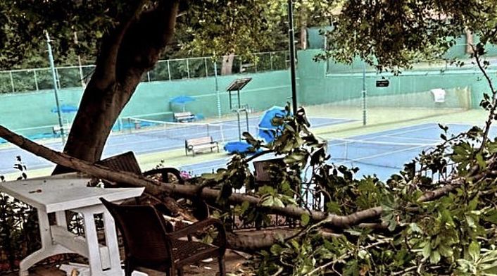 Zonguldak’ta dün akşam saatlerinde etkili olan sağanak yağış ve fırtına nedeniyle, tenis kortunda bir çok ağacın dalları kırılırken, masalar kullanılmaz hale geldi.