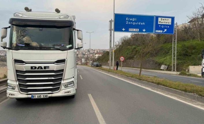 Kaza, saat 19.30 sıralarında Alaplı çıkışındaki Karayolu ana yol üzerinde meydana geldi. Edinilen bilgilere göre Akçakoca istikametine seyir halindeki 81 AAD 530 Plakalı tır sürücü O.K, kör kısmında kalan A.K.,idaresindeki 14 BK 373 plakalı otomobile çarptı. Savrulan otomobil ters dönerek refüje çıktı.