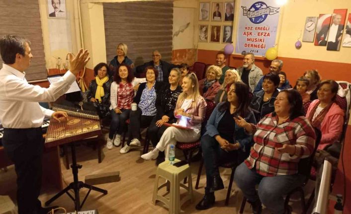 Zonguldak’ın Ereğli İlçesindeki, Aşk-Efza Musıki Derneği Türk Sanat Müziği topluluğu25 Mayıs’ta düzenlenen konser öncesi son provalarını yapıyor.