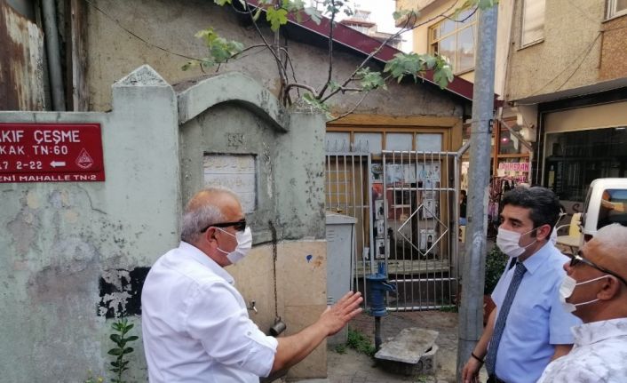 Bölge Müdürü Erdal Pınar ile Başkan Çetin Bozkurt daha sonra bakım onarımına devam edilen Merkez Yeni Cami inşaatı ile Vakıfçeşme Sokak’ta bulunan Vakıflar Bölge Müdürlüğü’ne ait çeşmede incelemelerde bulundu.
