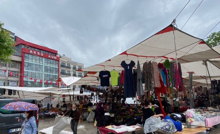 Zonguldak’ta her çarşamba günü Soğuksu semtine kurulan giysi pazarı sağanak yağış nedeniyle ilgili görmedi