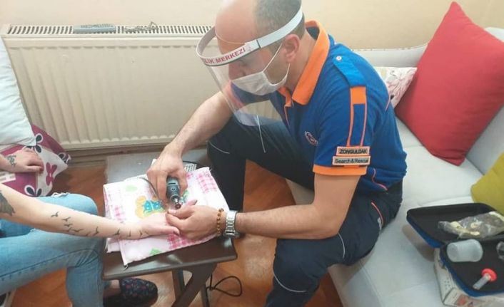 Zonguldak’ta yüzüğü parmağına sıkışan kadının imdadına AFAD ekipleri yetişti.