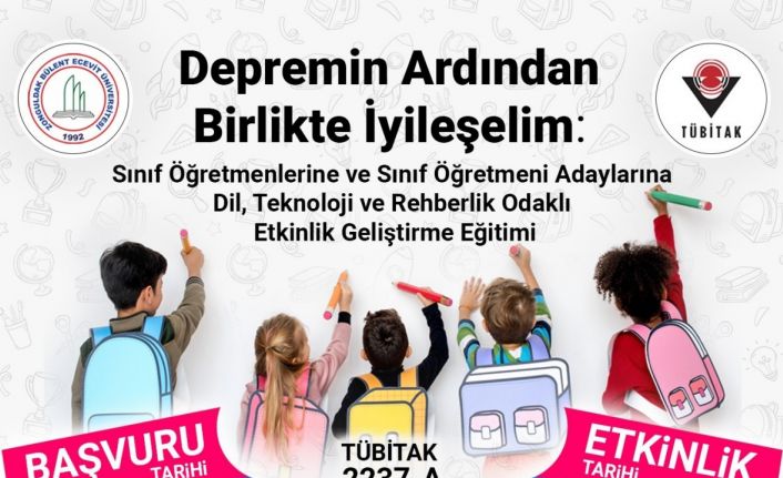 TÜBİTAK 2237-A Bilimsel Eğitim Etkinlikleri Desteği Programı “Deprem Özel Çağrısı” çerçevesinde “Depremin Ardından Birlikte İyileşelim: Sınıf Öğretmenlerine ve Sınıf Öğretmeni Adaylarına Dil, Teknoloji ve Rehberlik Odaklı Etkinlik Geliştirme Eğitimi” başlıklı proje, TÜBİTAK 2237 kapsamında desteklenecek. Proje çerçevesinde, 6 Şubat Kahramanmaraş merkezli depremlerden etkilenen ilkokul düzeyindeki öğrencilerin eğitiminde yararlanmak üzere, lisans ve lisansüstü öğrenim görmekte olan sınıf öğretmenlerine ve sınıf öğretmeni adaylarına dil, teknoloji ve rehberlik odaklı etkinlik geliştirme eğitimi verilmesi hedefleniyor. Projenin, çevrimiçi etkinlik olarak yapılması planlanıyor.