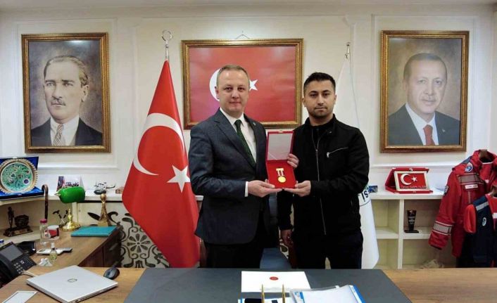 Zonguldak Belediyesi’nde görevli itfaiye eri Mehmet Tuna’ya devlet üstün fedakarlık madalyası takdim edildi.