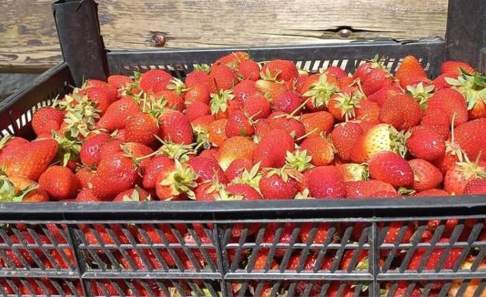 Zonguldak’ın Alaplı ilçesine bağlı köylerinde üreticiler güneşin yüzünü göstermesiyle olgunlaşan çilek meyvesinin ilk hasadını almaya başladı.