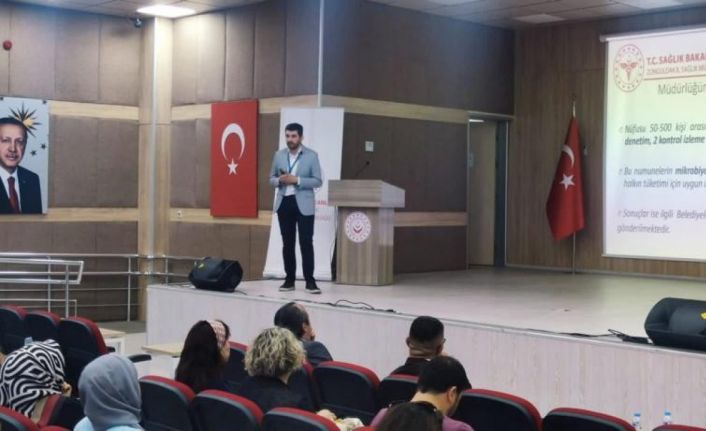 Panele konuşmacı olarak katılan Halk Sağlığı Hizmetleri Başkanlığı Çevre Sağlığı Biriminde görevli Okan Yalama ve Bülent Ecevit Üniversitesi Çevre Mühendisliği Bölümü Dr. Öğretim Üyesi Sefa Kocabaş, sağlıklı su temini ve sanitasyonu hakkında katılımcılara geniş çerçevede bilgilendirmelerde bulundular.