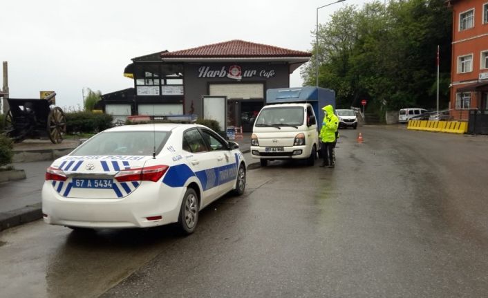 Zonguldak’ta polis ekipleri kamyon ve kamyonetler üzerinde denetim yaptı.