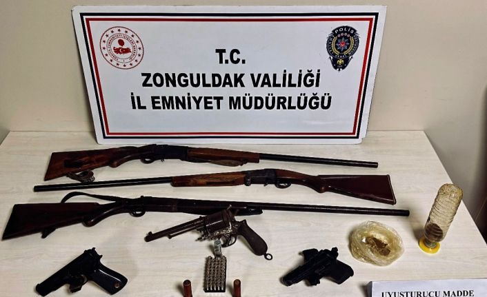 Operasyon sonucu yapılan aramalarda 3 adet tüfek, 1 adet ruhsatsız tabanca, 2 adet şarjör, 15 adet fişek, 6-7 gram uyuşturucu madde ve 47 adet kurusıkı fişeği ele geçirildi. Operasyon kapsamında gözaltına alınan S.A. (63) ve T.T. (44), çıkarıldıkları Zonguldak Sulh Ceza Mahkemesi’nce adli kontrol şartıyla serbest bırakıldı.